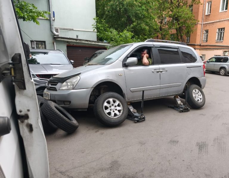 Профессиональный ремонт на выезде включает устранение прокола, вулканизацию, сезонную переобувку, балансировку колеса и правку дисков